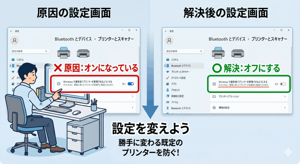 Windows11 いつも使うプリンター設定を固定!勝手に変わるのを防ぐ方法